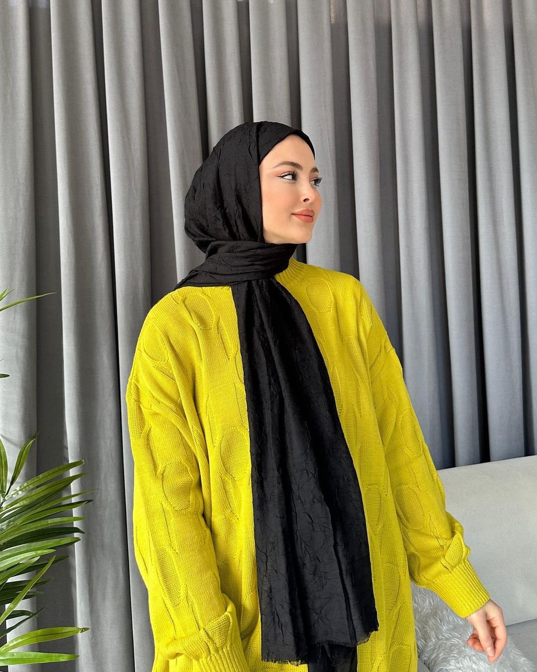 Organic Scarfs Bambu Kraş Şal Modeli - Siyah