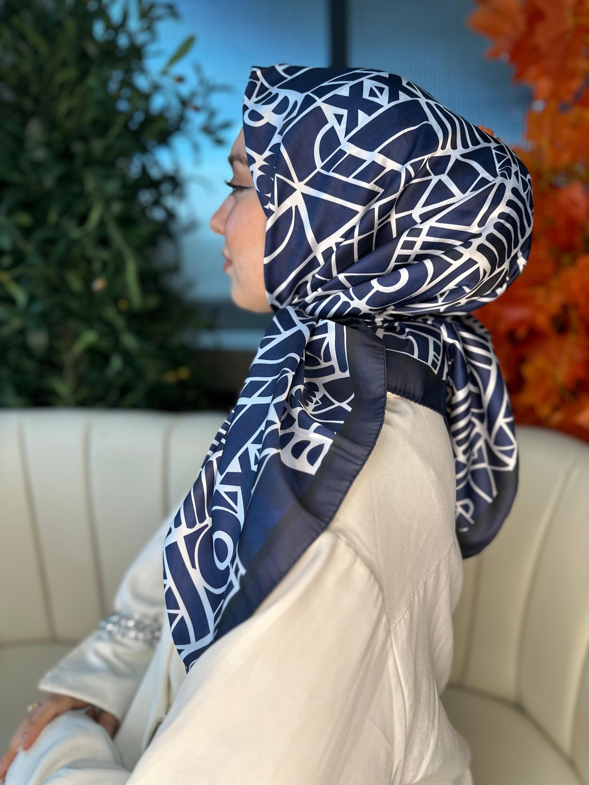 Oxxo Desen Vual İpek Eşarp-6203662-Lacivert