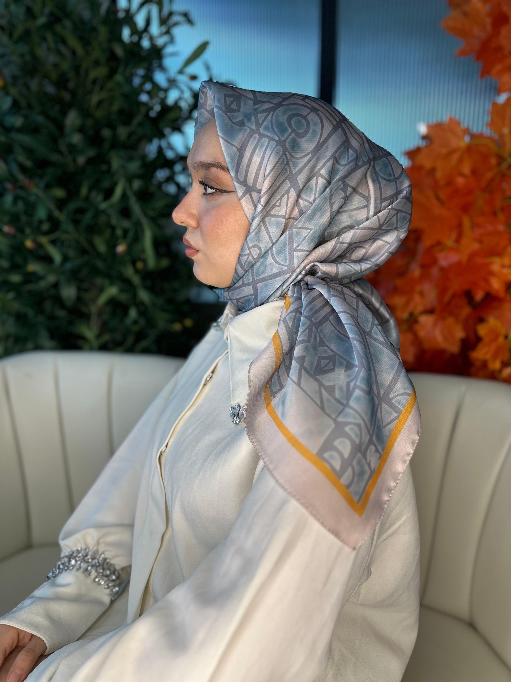 Oxxo Desen Vual İpek Eşarp-6203662-İncir