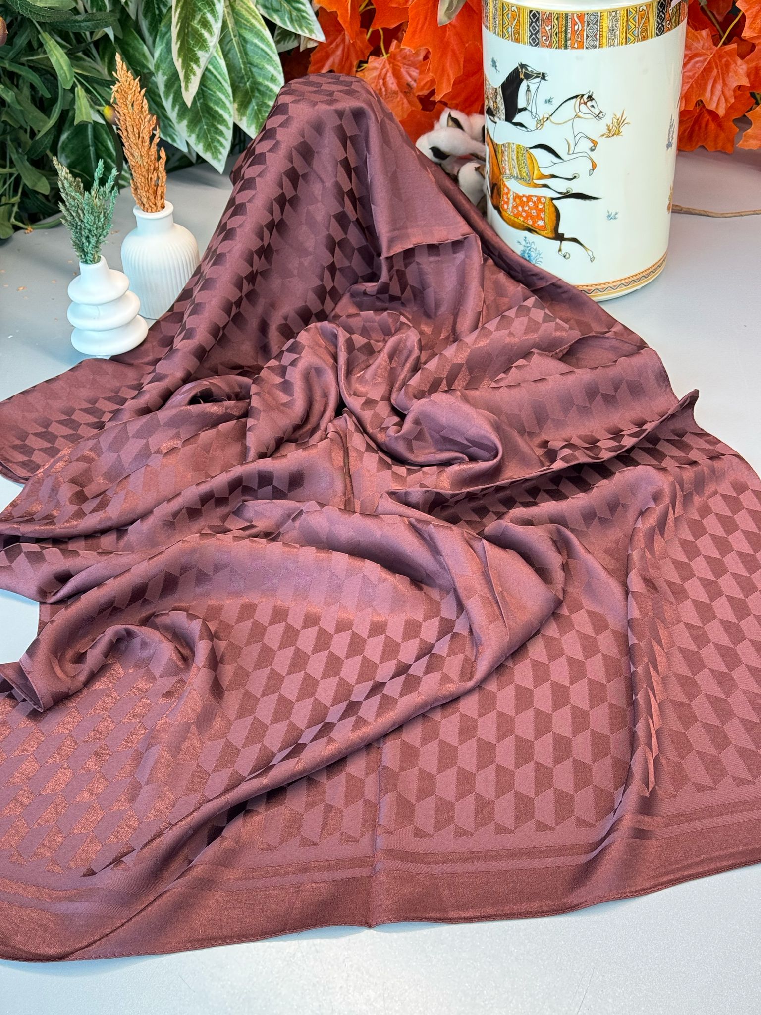 Qoza Desen İpeksi Jakar Şal KOYU BORDO
