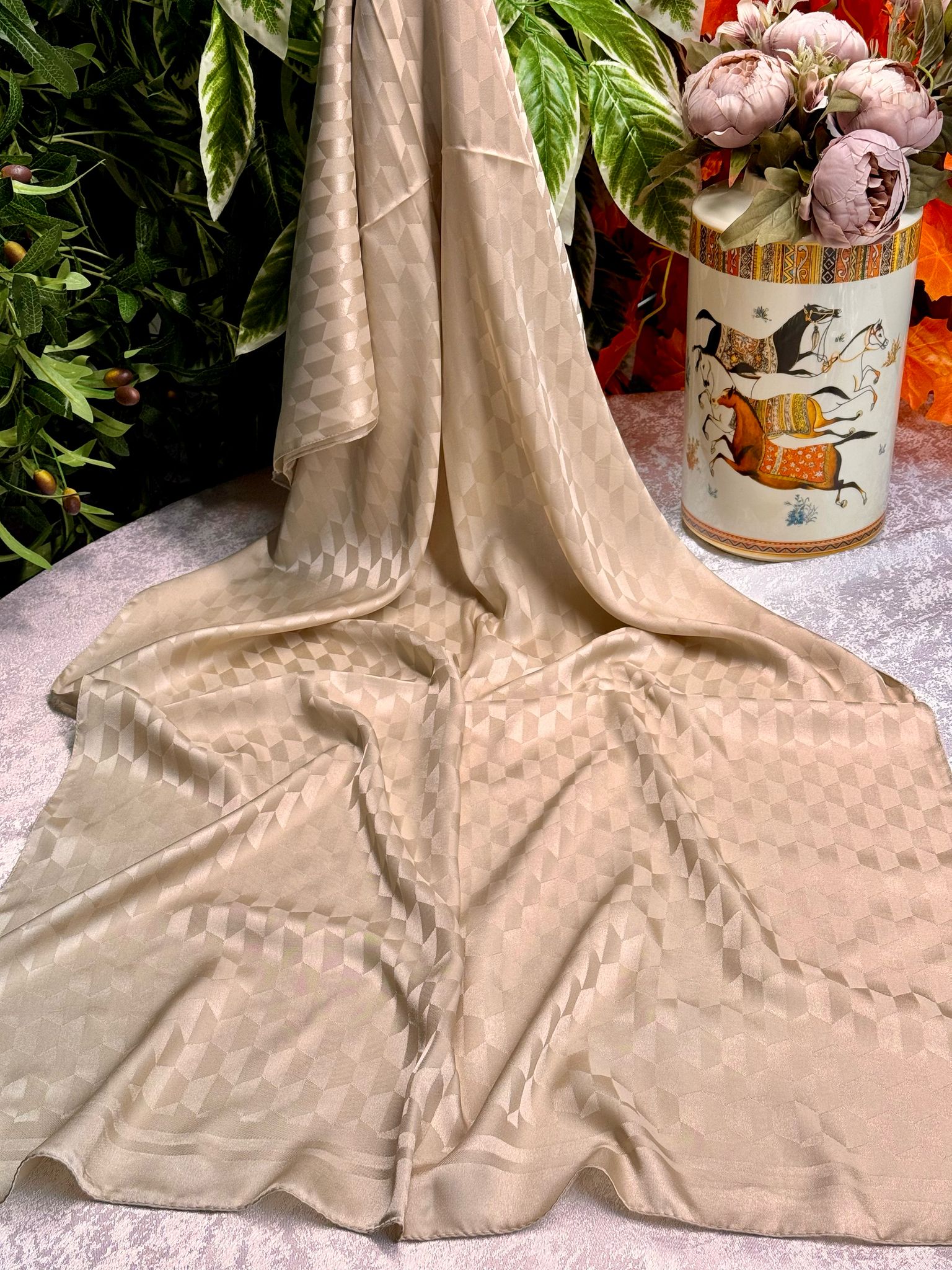 Qoza Desen İpeksi Jakar Şal - Pamuk Şekeri