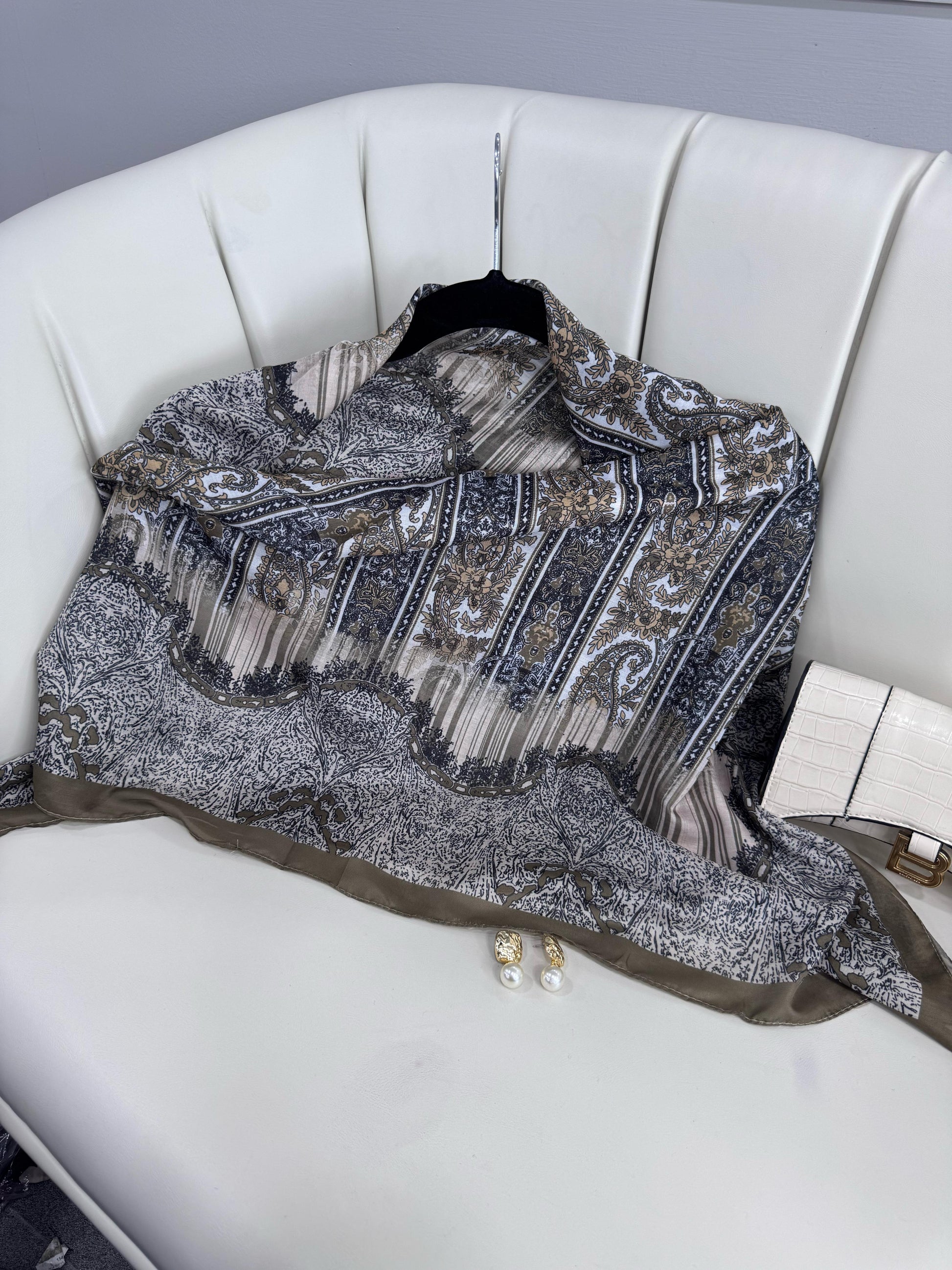 Retro Desen Pamuk İpeksi Eşarp -125698- Çikolata
