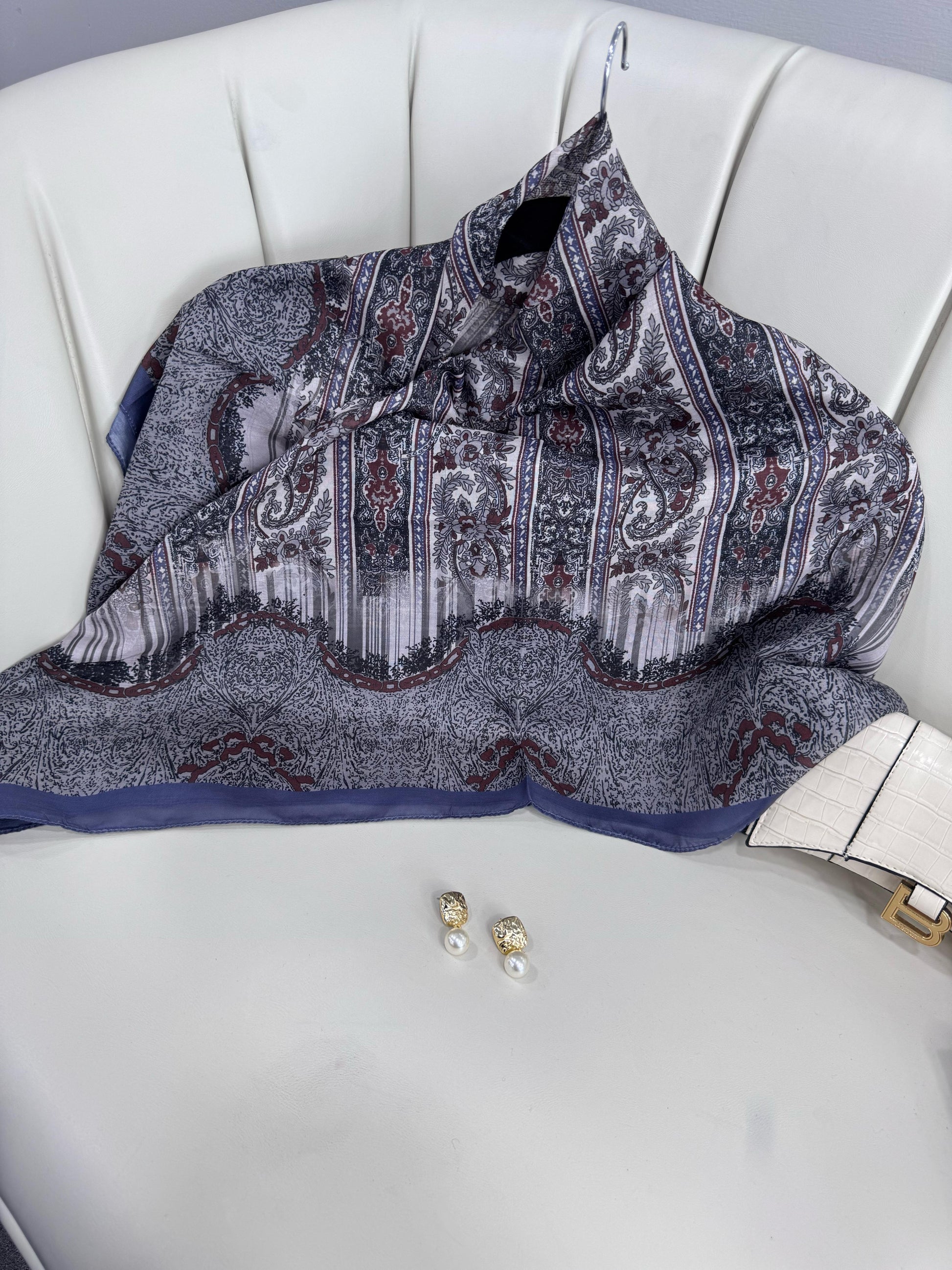 Retro Desen Pamuk İpeksi Eşarp -125698- Gök Mavisi