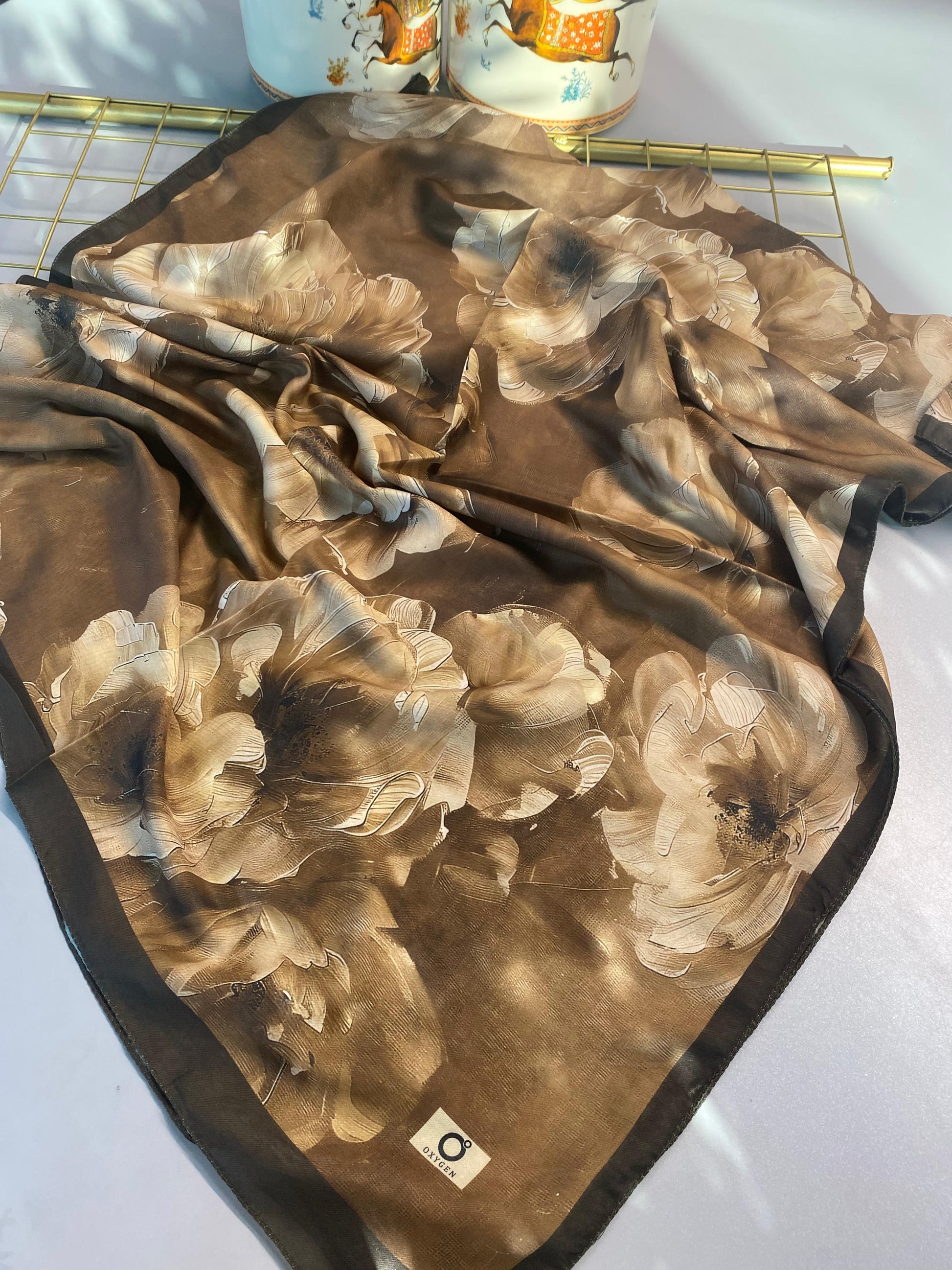 Rosaline Desen Pamuk İpek Şal-13000-Kahve