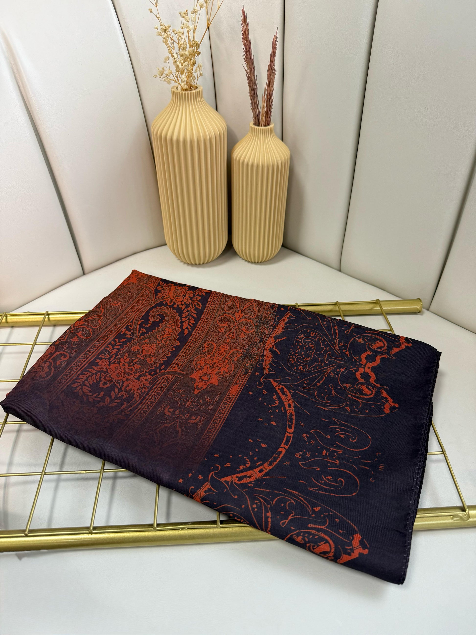 Sarmaşık Desen Pamuk İpek Şal -41200-Balkabağı