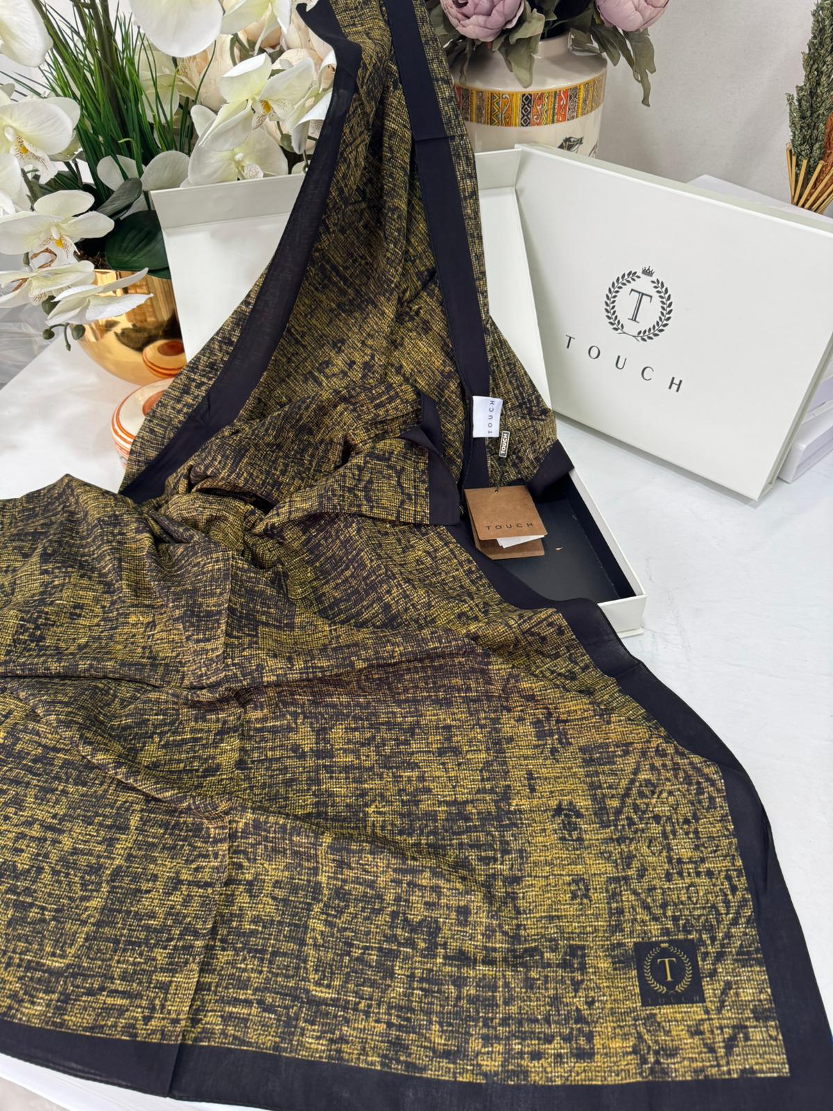 Touch İthal Etnik Desen Pamuk İpek Şal 63457 - Haki