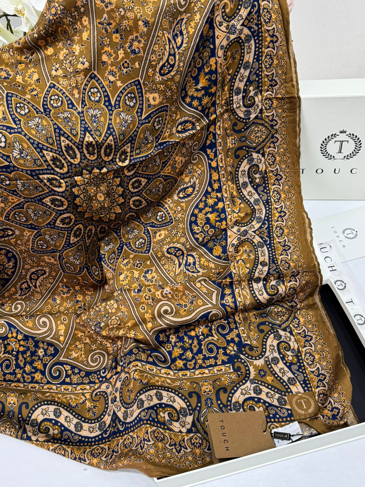 Touch İthal Etnik Desen Yün İpek Şal 34330 - Kahve Mavi