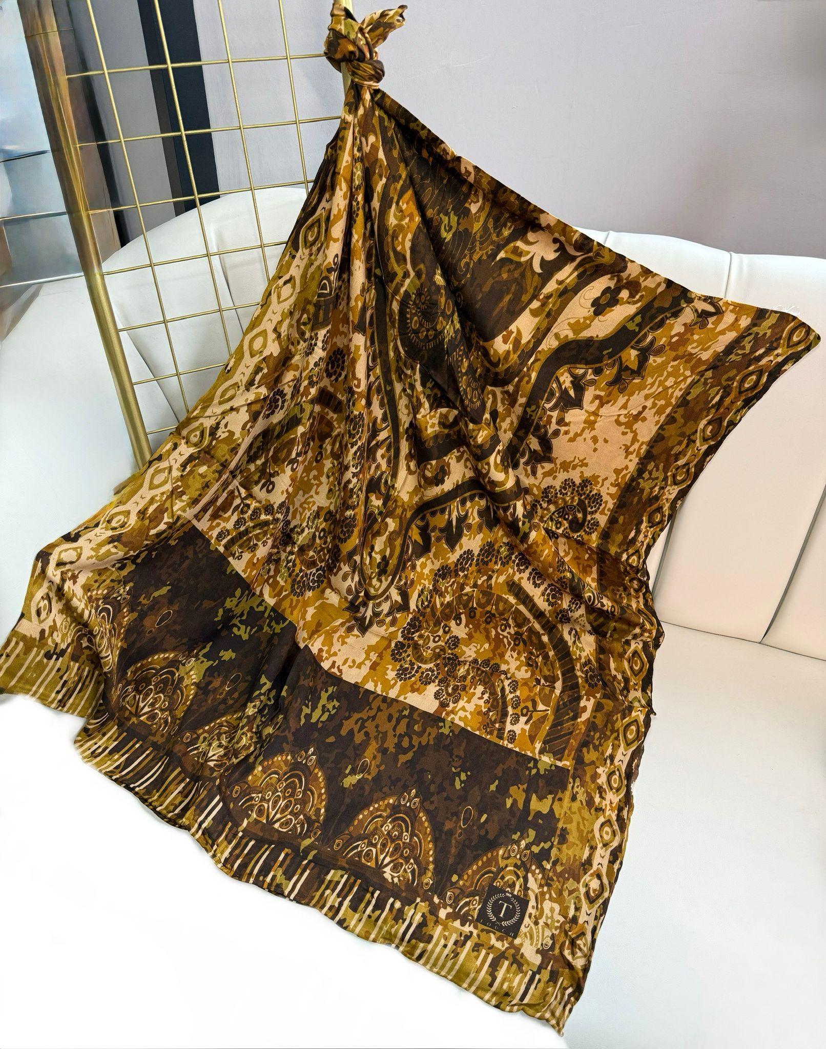 Touch İthal Etnik Desen Yün İpek Şal-34550-Karemel-Latte