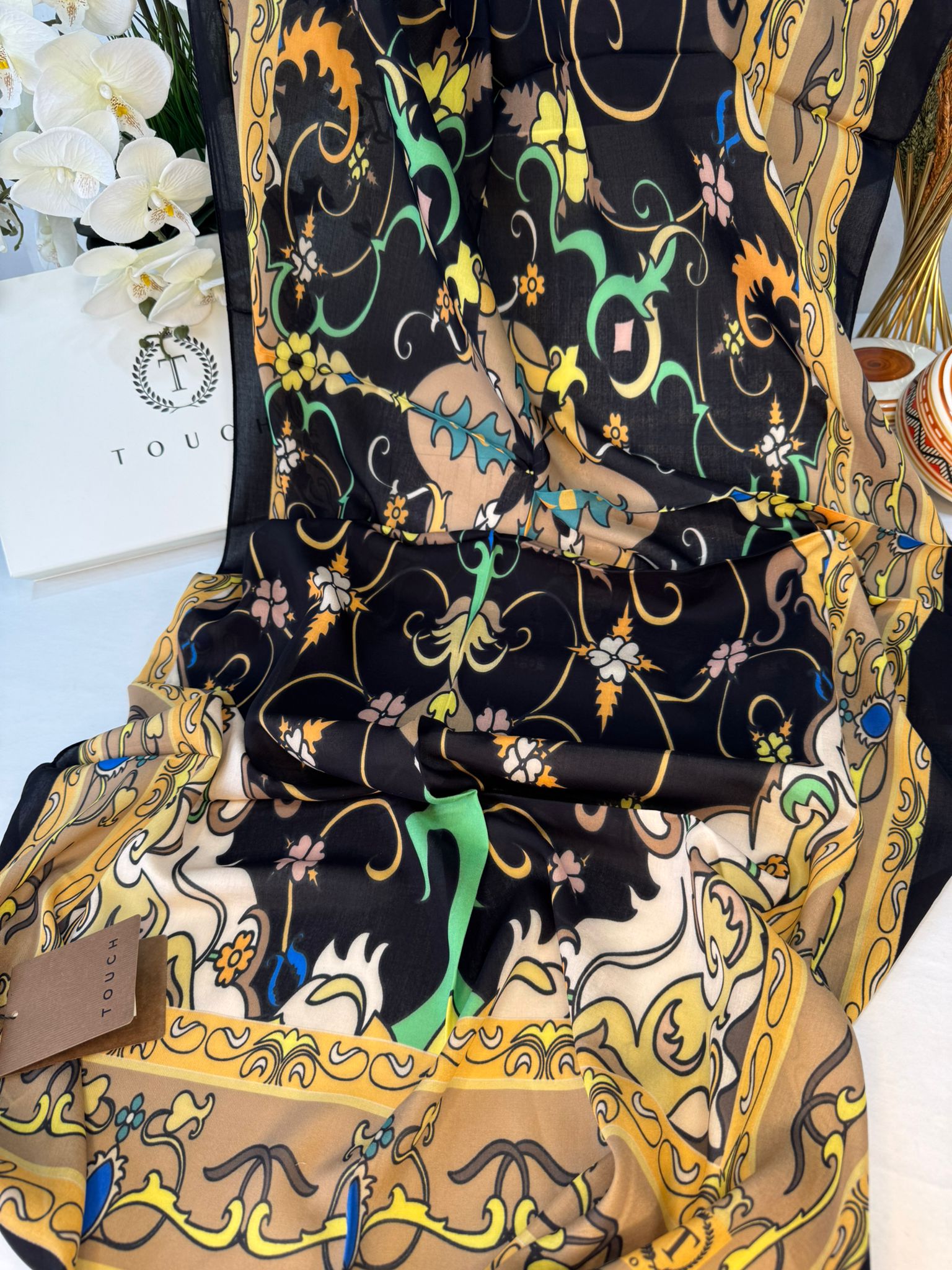 Doğanın tazeliği ve lüksün mükemmel bir birleşimi olan Etnik Desen Pamuk İpek Şal Kutu Seti İle Gelmektedir, gardırobunuzun vazgeçilmez bir parçası olmaya aday. Bu özel tasarım, %50 pamuk ve %50 ipek karışımıyla üretilmiştir, böylece yumuşaklık ve lüksü bir arada sunar. 80x190 cm boyutları, farklı bağlama seçenekleri ile her tarza uygun bir görünüm sunar.