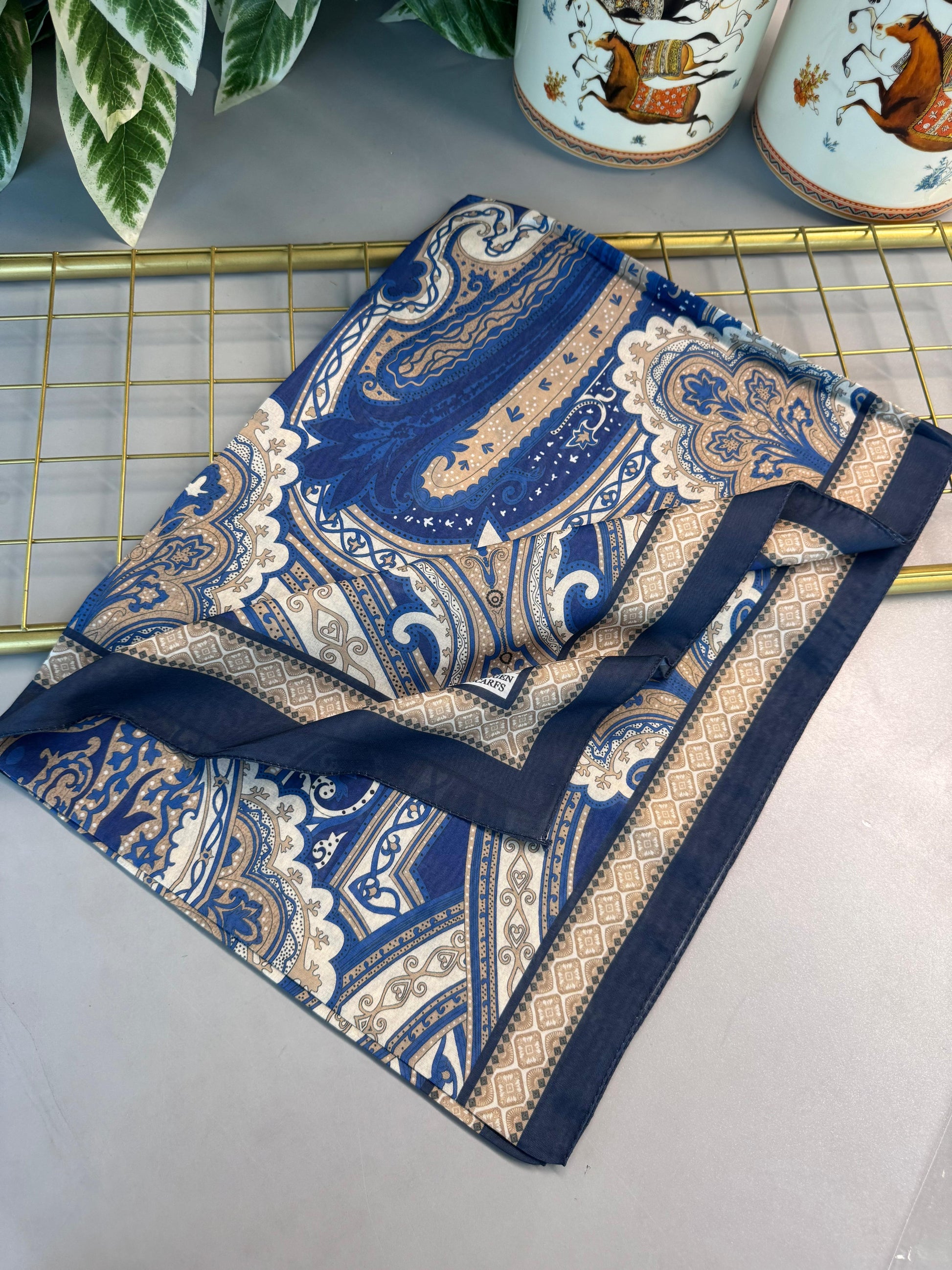 Yeni Etnik Pamuk Soft Şal 65301 - 65301 -Gece mavi