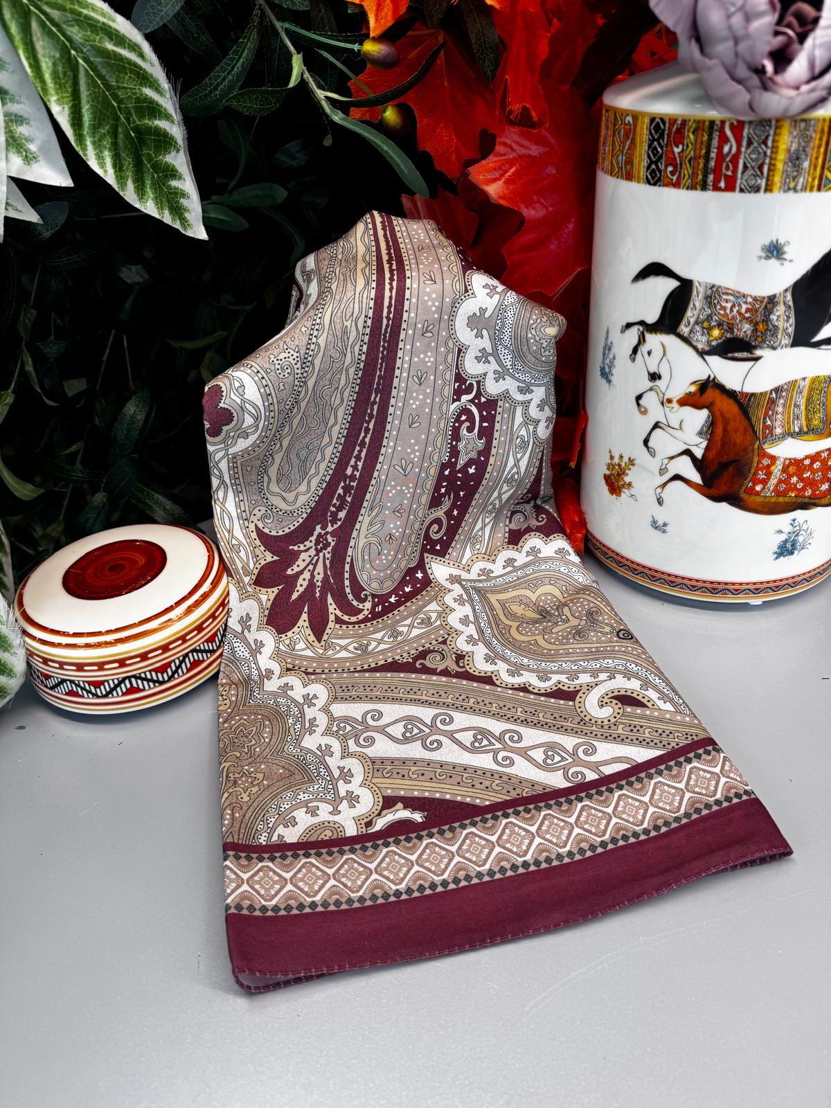 Yeni Etnik Pamuk Soft Şal 65301 - 65301 Vişne-Altın