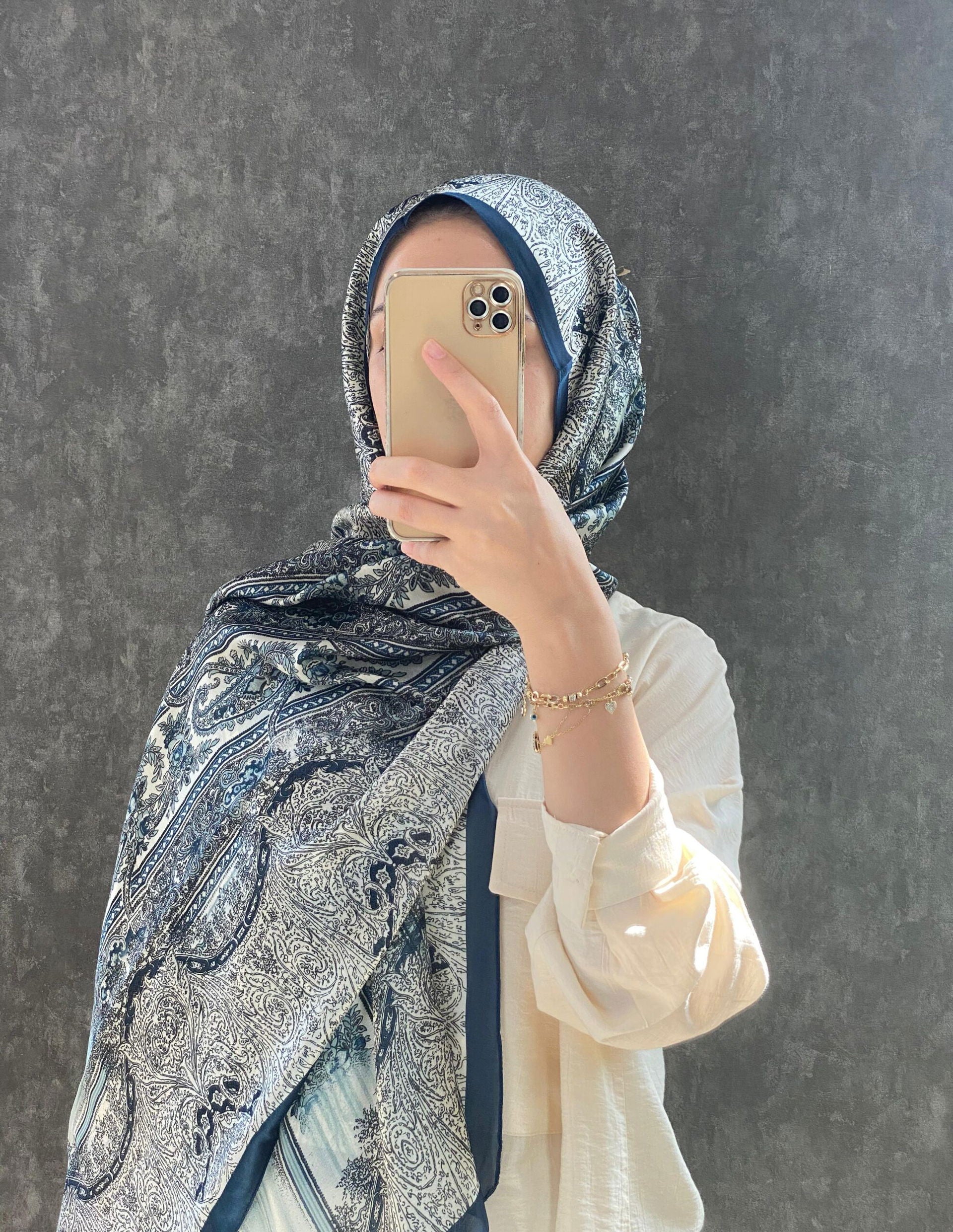 Etro Marka Yeni Sezon İthal Etnik Desen Vual İpek Şal - Lacivert