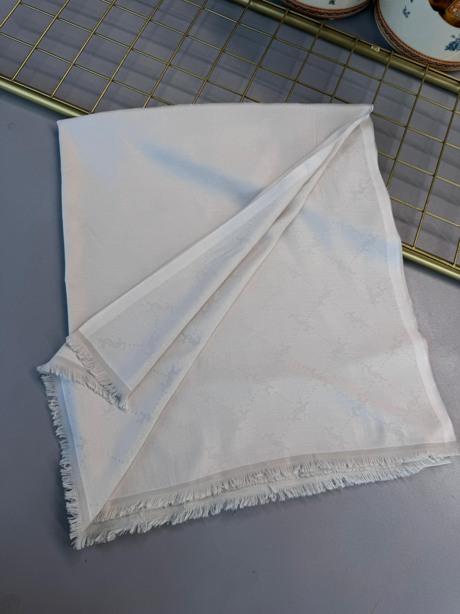 Ysl Desen Kendinden Dokulu Desenli İtalyan Şal-10010-Beyaz