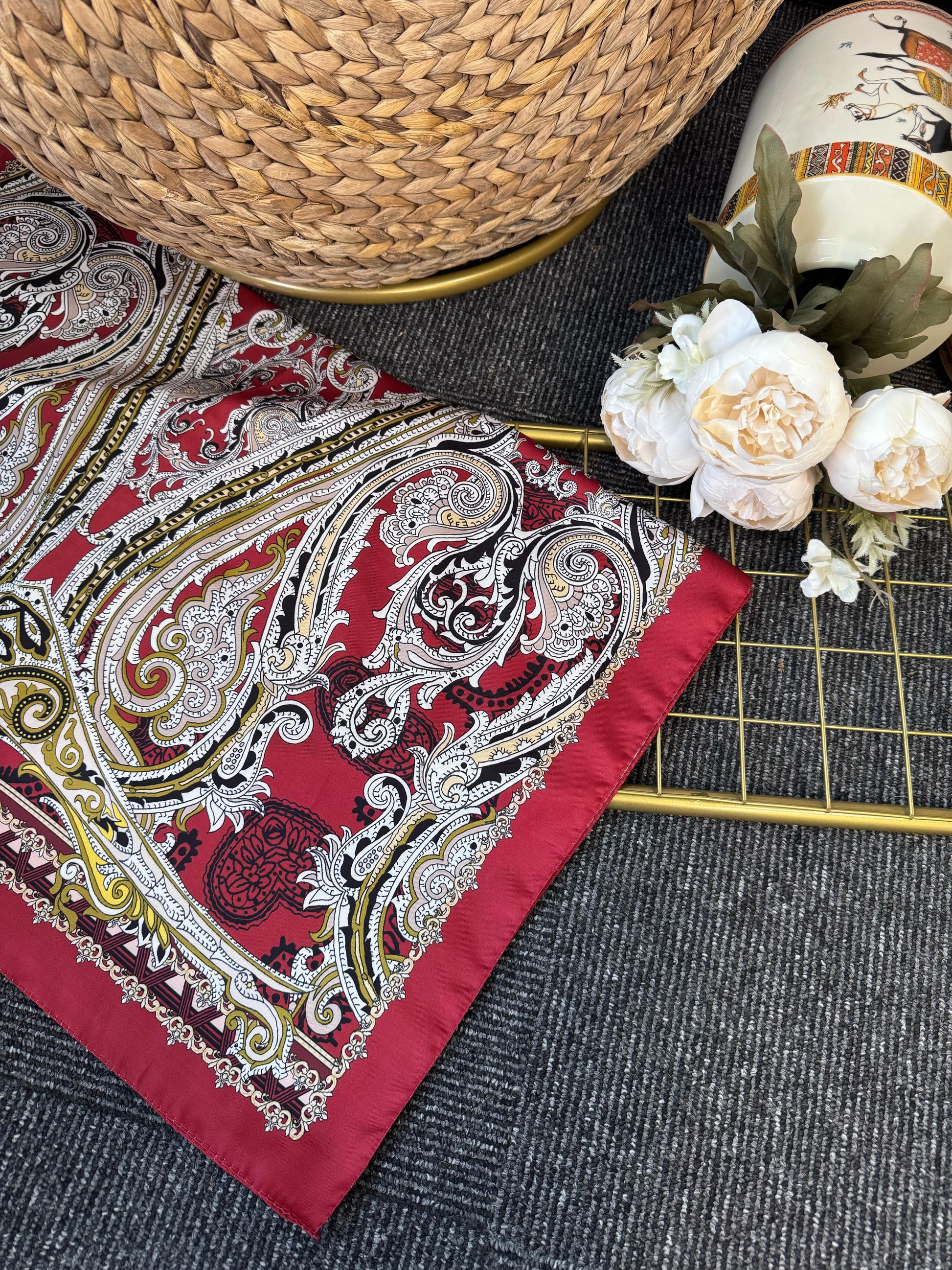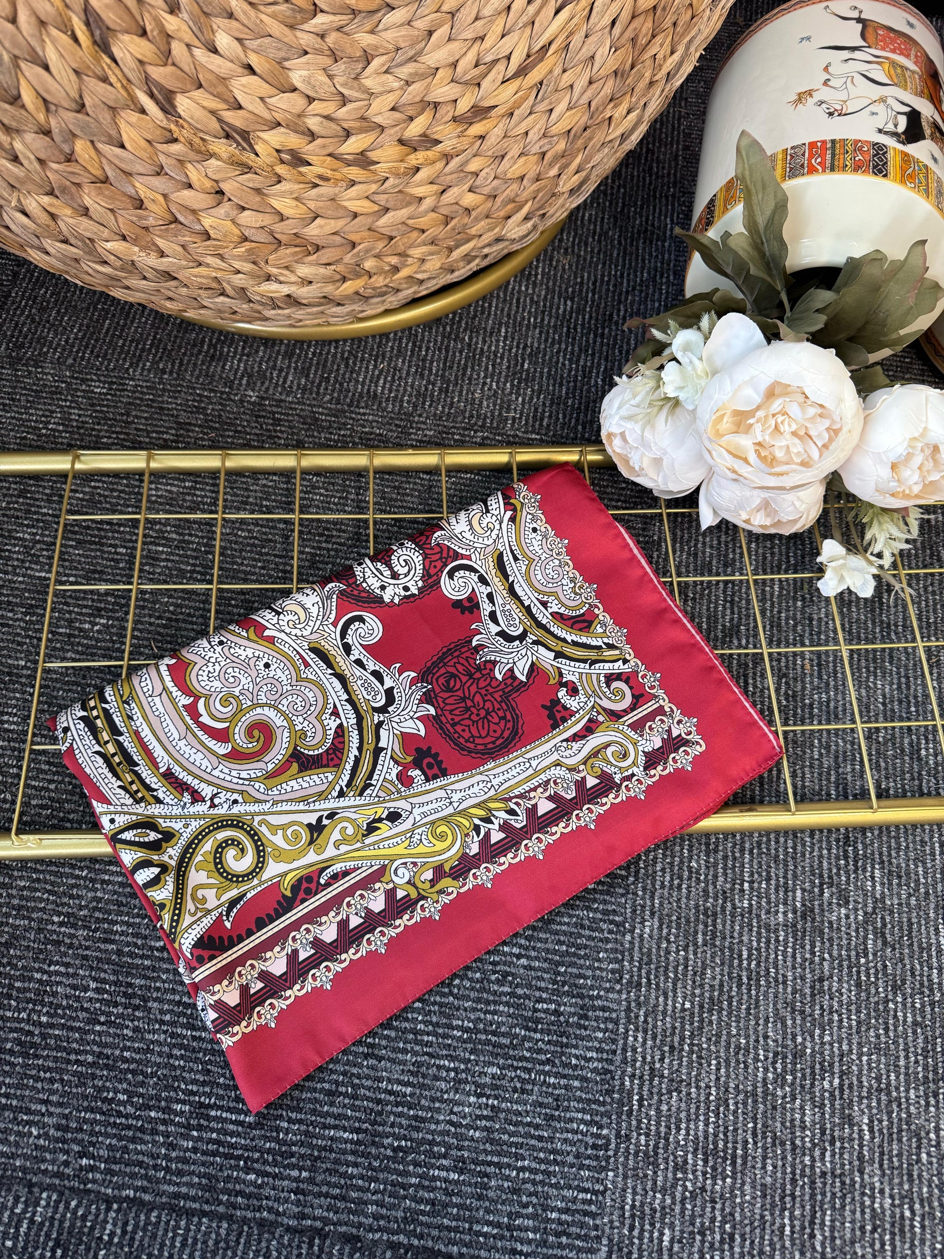 Zamansız Motif Vual İpek Şal-487934-Kırmızı
