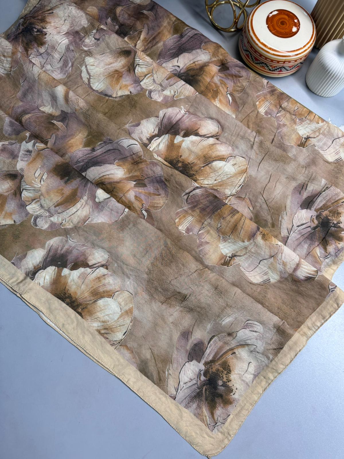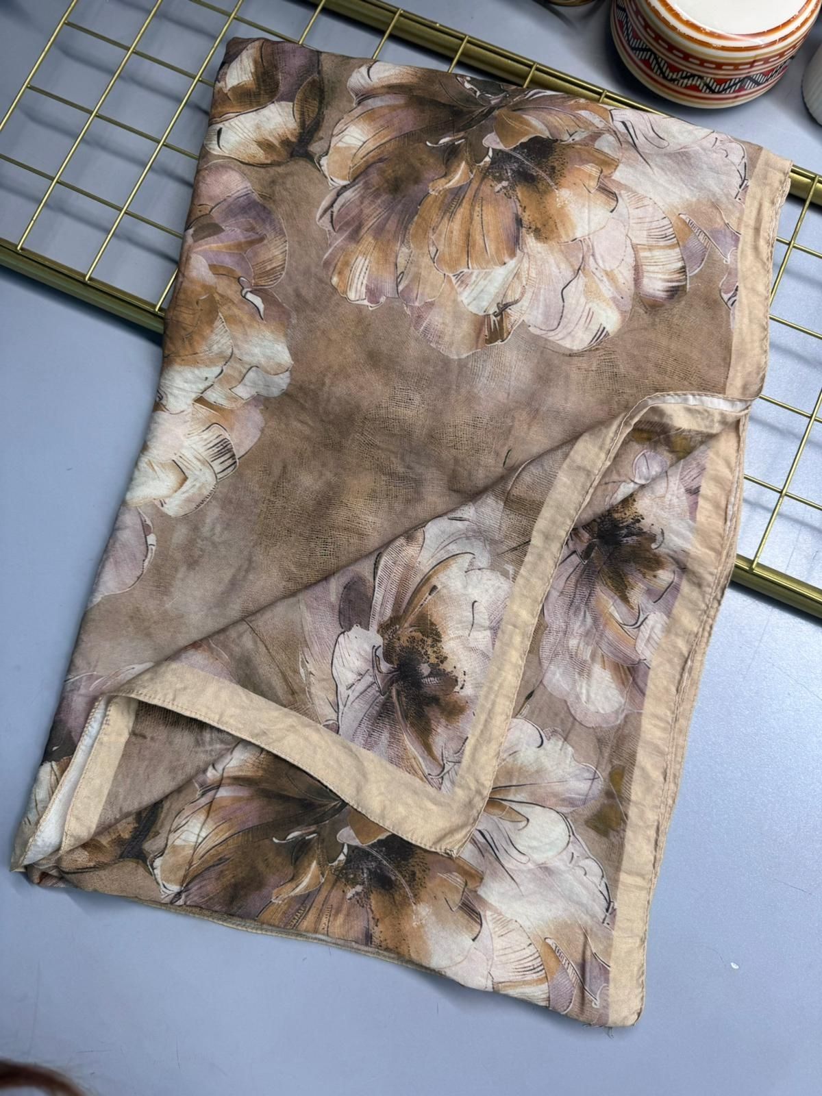 İnce ayrıntılarla bezenmiş çiçek desenleri, şalın dokusuna derinlik ve hareket kazandırırken; sade ama etkileyici bir tutuşla hem günlük kullanımda hem de özel anlarda tercih edilebilirliği zamansız bir parça sunar.